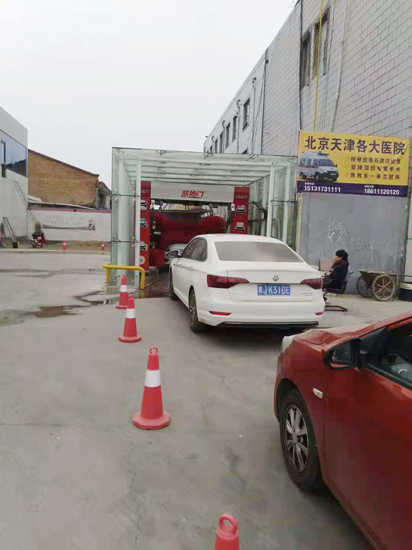 (一般不要用自動沖底盤,因為有些車質量不好可能會把汽車喇叭沖壞)、自動噴電腦洗車機專用洗車液和水蠟、自動仿行刷洗、自動仿行風干。一輛臟車進去,一輛凈車出來,洗車時間大體為3分左右。適合日洗車輛在120輛左右的汽車美容店等地。